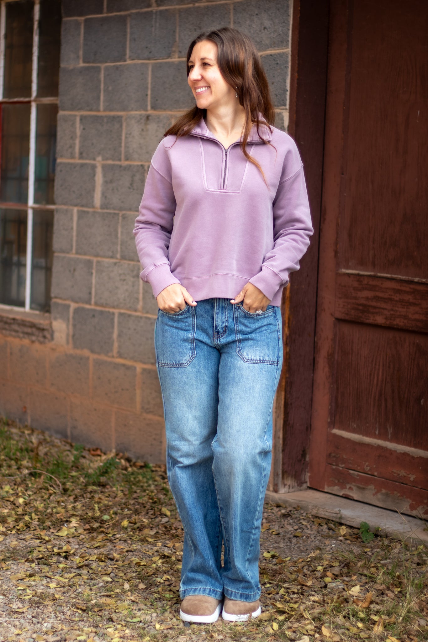 Meet our Dollie Double Pocket Wide Leg Jeans—a statement denim designed for everyday wear. This high-rise style features a zipper fly, patched front pockets, and a flattering wide-leg silhouette that gives you that effortlessly cool vibe. With an 11" rise and 32" inseam, these jeans also include a built-in tummy-control panel and band that feel incredibly comfortable while giving you a smooth, slimming fit. Pair them with your favorite basics or cozy knits for a look that always feels chic.