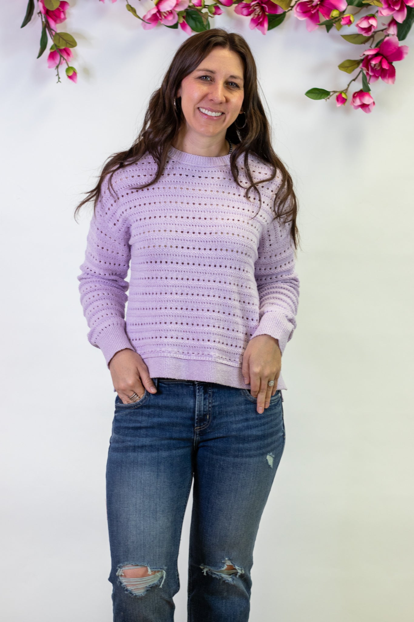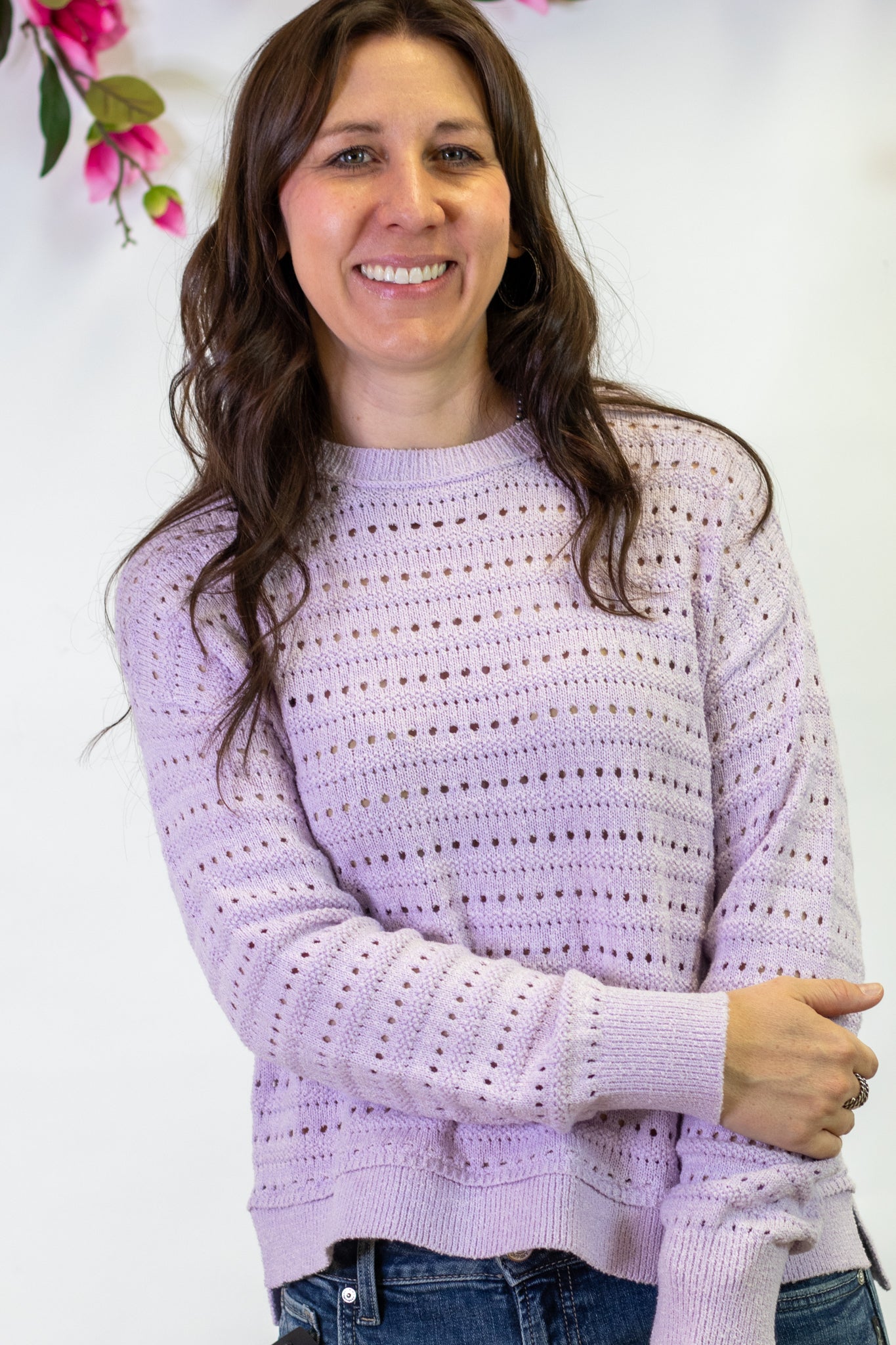 The Robin Sweater from Thread & Supply is the soft, spring-ready layer your closet needs. This stunning lavender open knit is lightweight and breathable, making it perfect for brighter days and easy seasonal transitions. The delicate open knit detail adds beautiful texture while still keeping the look effortless and wearable.