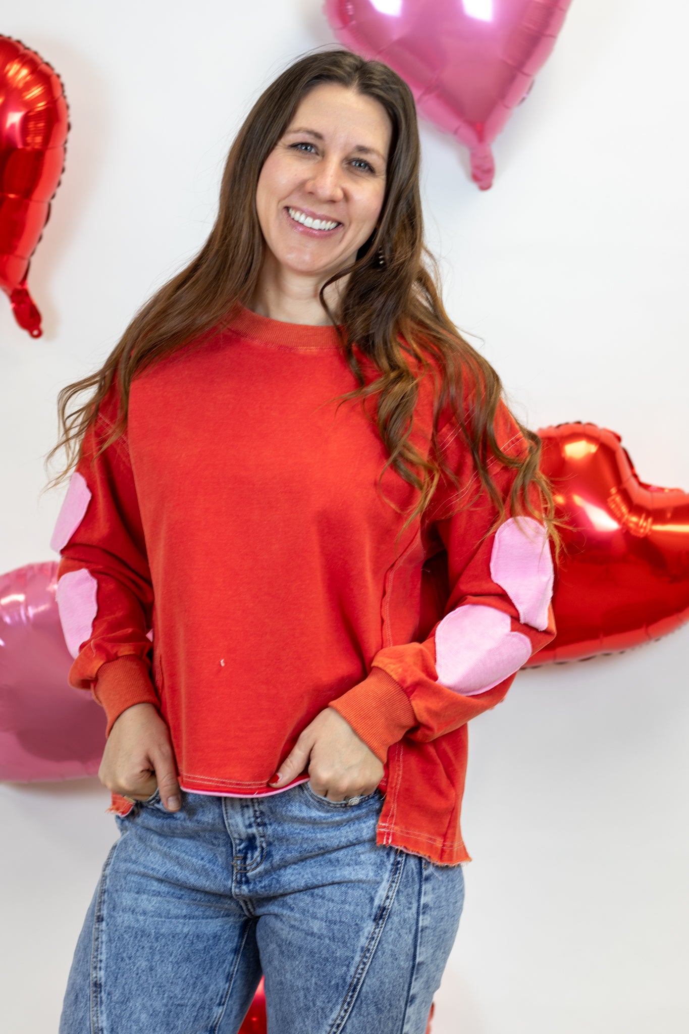 Meet your new wear-it-on-repeat favorite 💕 This heart patch pullover is fun, playful, and so easy to style for every season. We love the oversized fit, subtle side cut detail, and those adorable heart patches that add just the right pop of personality. Toss it on with denim, leggings, or layered up—this one is pure feel-good comfort. Fits oversized; stick with your true size.