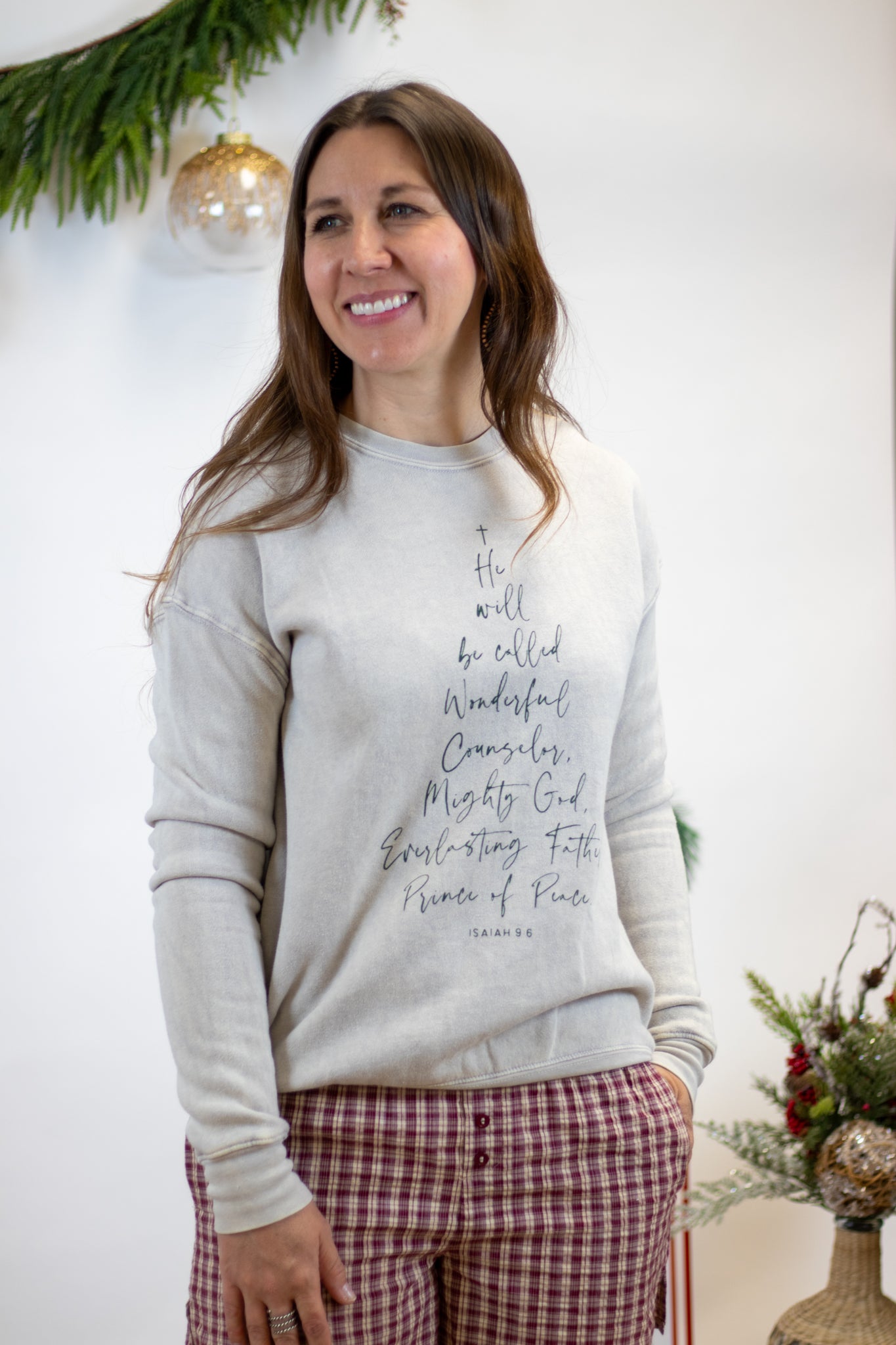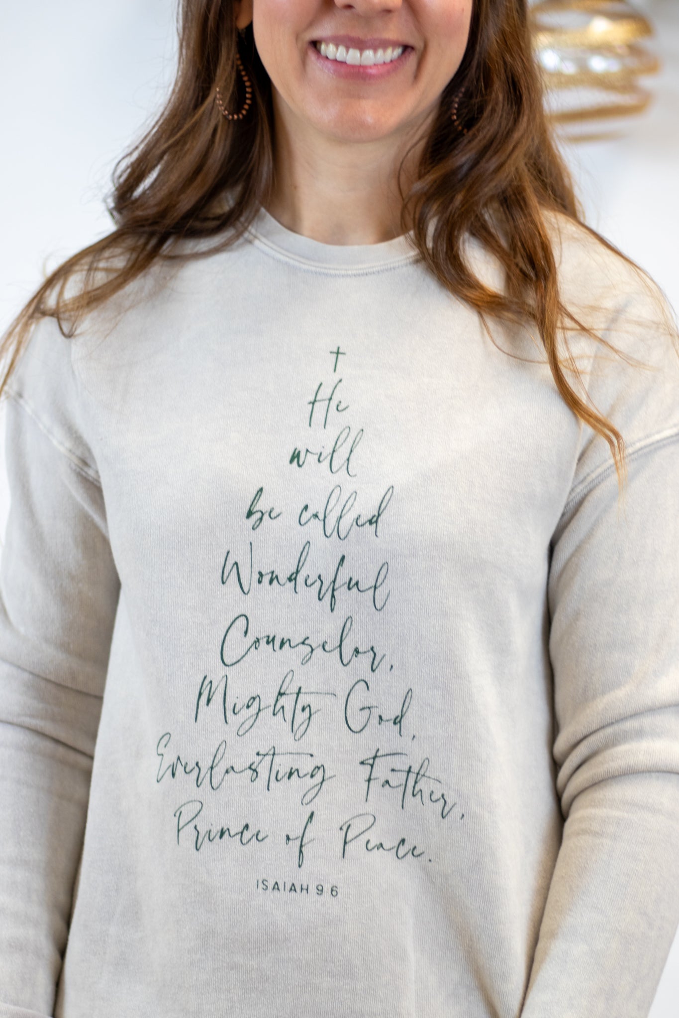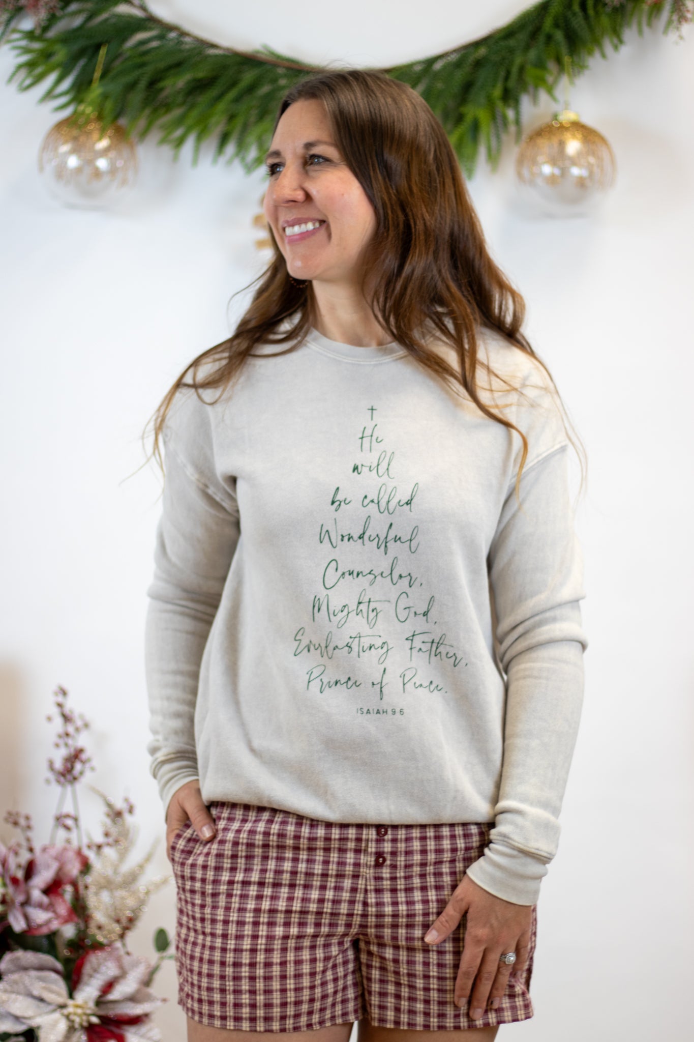 Our He Will Be Called Pullover is a beautiful reminder of the reason for the season. Featuring the words from Isaiah 9:6 arranged in the shape of a Christmas tree, this pullover is soft, meaningful, and perfect for cozy holiday moments. The neutral sand tone pairs effortlessly with anything in your closet — we especially love it styled with our Jolly Plaid Boxer Shorts for a festive look. The fit is true to size with a comfortable, relaxed feel you’ll want to live in all season long.