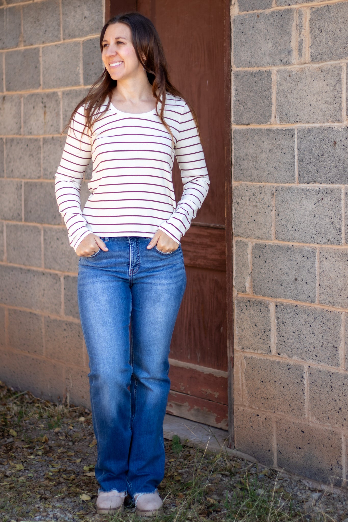 The Lauren Top from Thread & Supply is the everyday essential you’ll want in every outfit rotation. Made from an ultra–buttery soft fabric, this long sleeve tee feels absolutely dreamy on the skin. Its clean striped design and timeless silhouette make it one of the most versatile tops in your closet—perfect for layering, dressing up, or keeping it casual. Fit is true to size and effortlessly flattering, making it a go-to piece you’ll reach for again and again.