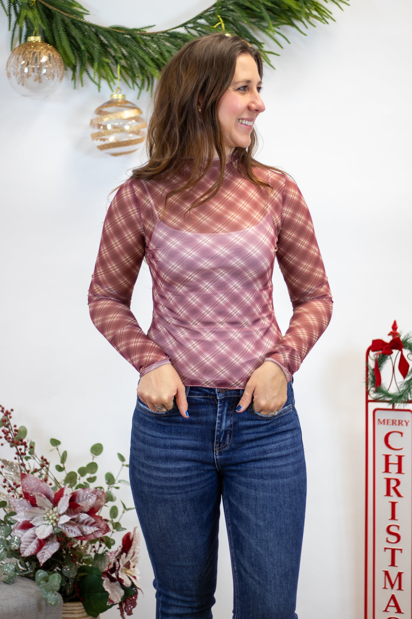 Meet the Better Together Plaid Mesh Top, your new secret weapon for effortless holiday glam. This burgundy plaid mesh beauty brings all the festive vibes while keeping things chic, lightweight, and unbelievably comfortable. Wear it layered under sweaters, vests, and graphic tees for a fun pop of pattern—or style it solo for a bold, head-turning moment. The stretch mesh fabric gives it a flattering, true-to-size fit that moves with you and feels amazing all day long. A must-have piece for holiday parties, winter outfits, and year-round styling magic.