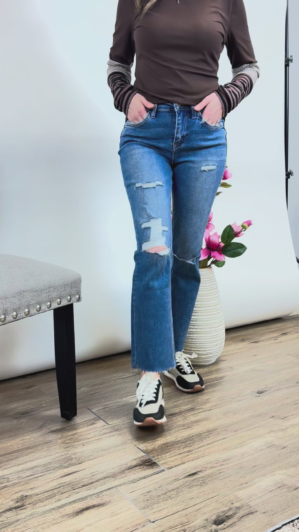 Say hello to your new go-to denim crush—the Jessi High Rise Slim Straight Jean. Crafted from ultra-comfortable stretch denim, these jeans feature a flattering 10” high rise that hugs in all the right places while still feeling easy and wearable. The slim straight leg, ankle-length 28” inseam, and raw hem bring just the right amount of edge, and the distressed details give them that perfectly lived-in look we all love. They’re effortlessly cool, endlessly versatile, and a total outfit-maker whether you dress them up or keep things casual. Fits true to size and is basically a no-brainer for everyday style with a little extra attitude.
