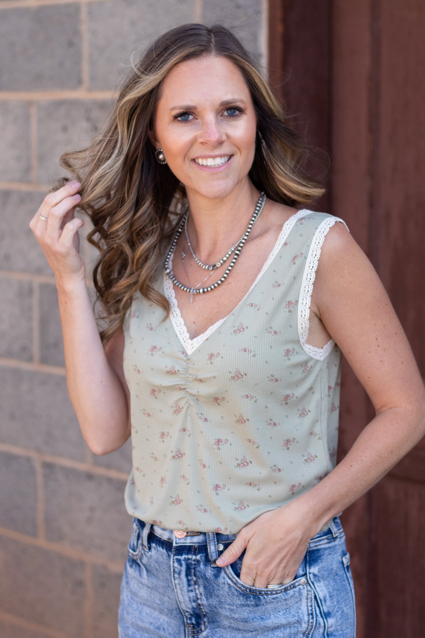 The In The Moment Floral Tank is one of those effortlessly pretty pieces you’ll reach for again and again. This sweet little tank features a classic ditsy floral print that feels timeless, feminine, and easy to style.