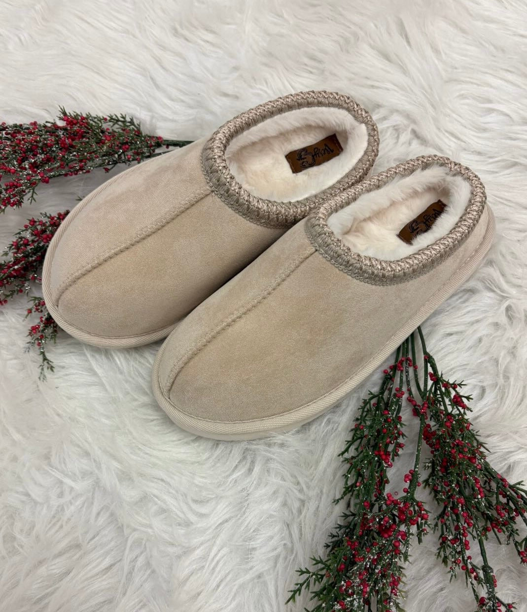 Our **Sparks Slide** is the ultimate blend of comfort and style! This tan slide can seamlessly transition from an indoor slipper to an outdoor shoe. Lined with cozy sherpa and featuring a cushioned sole, it's designed to keep your feet warm and supported. The stunning embroidered detail adds an elevated touch, making this slide more than just a basic. Perfect for those cooler days, shorter evenings, and all your cozy night plans—you're going to love slipping into these!