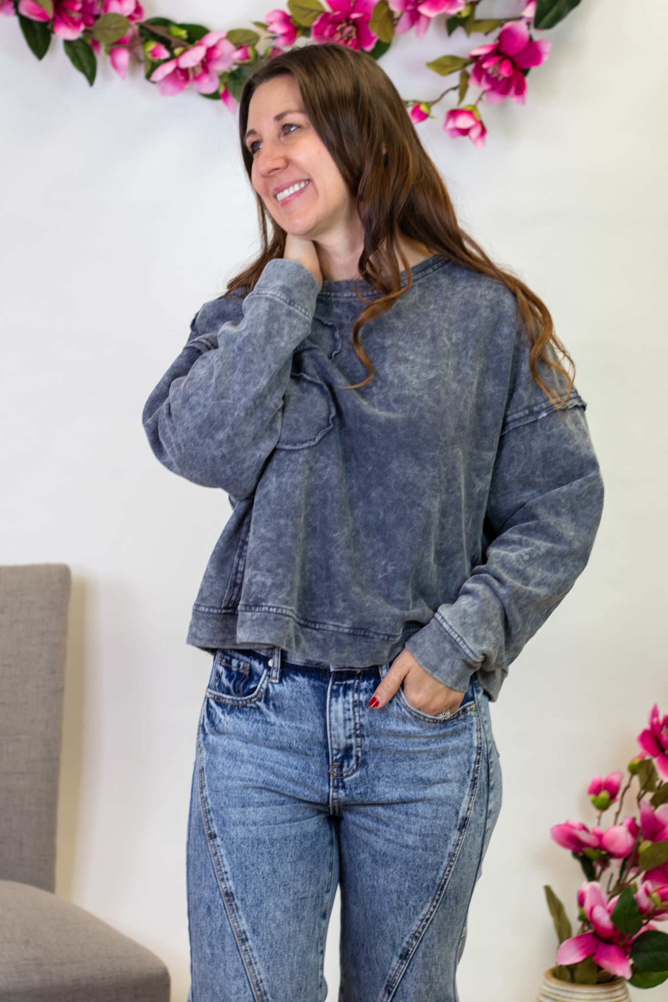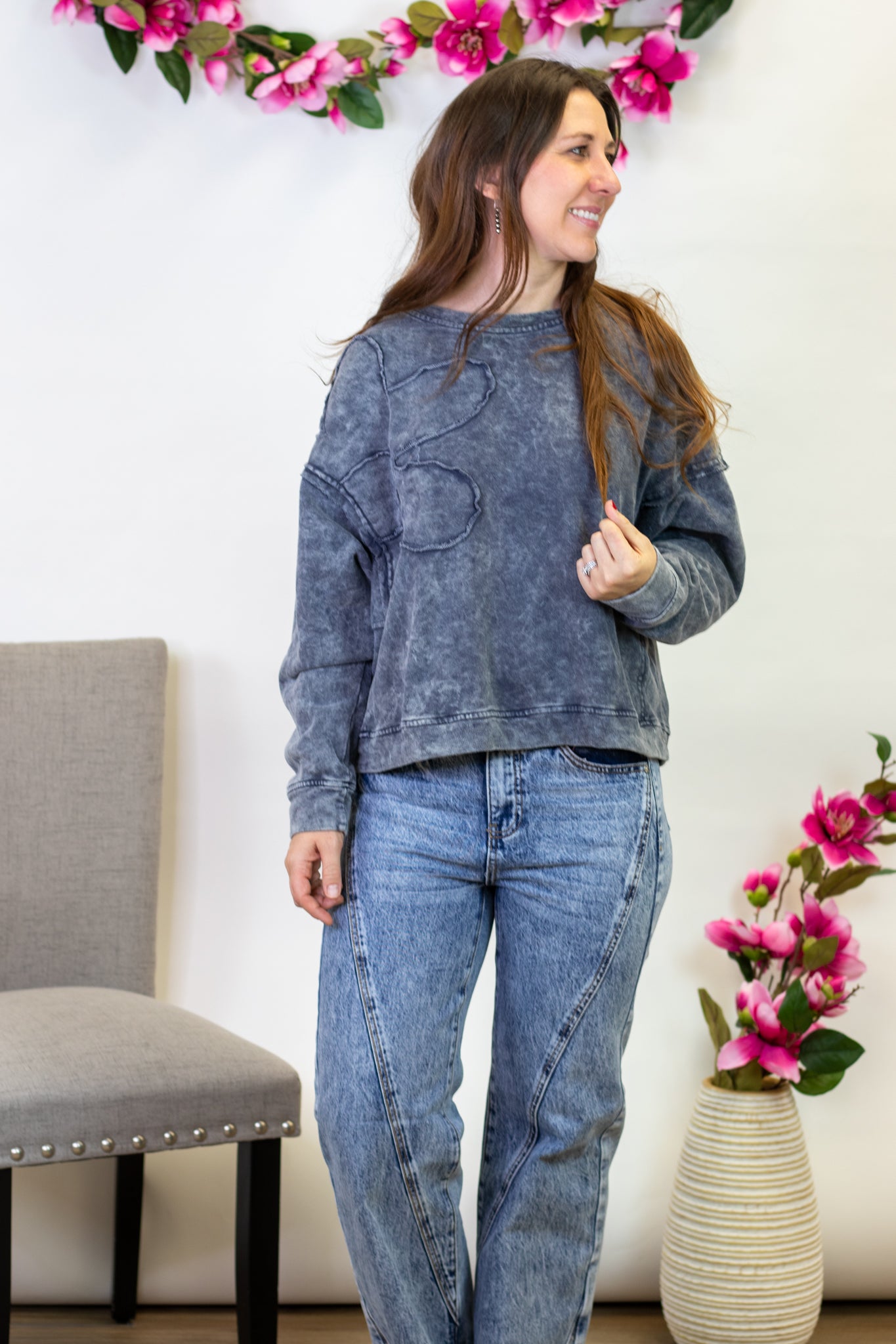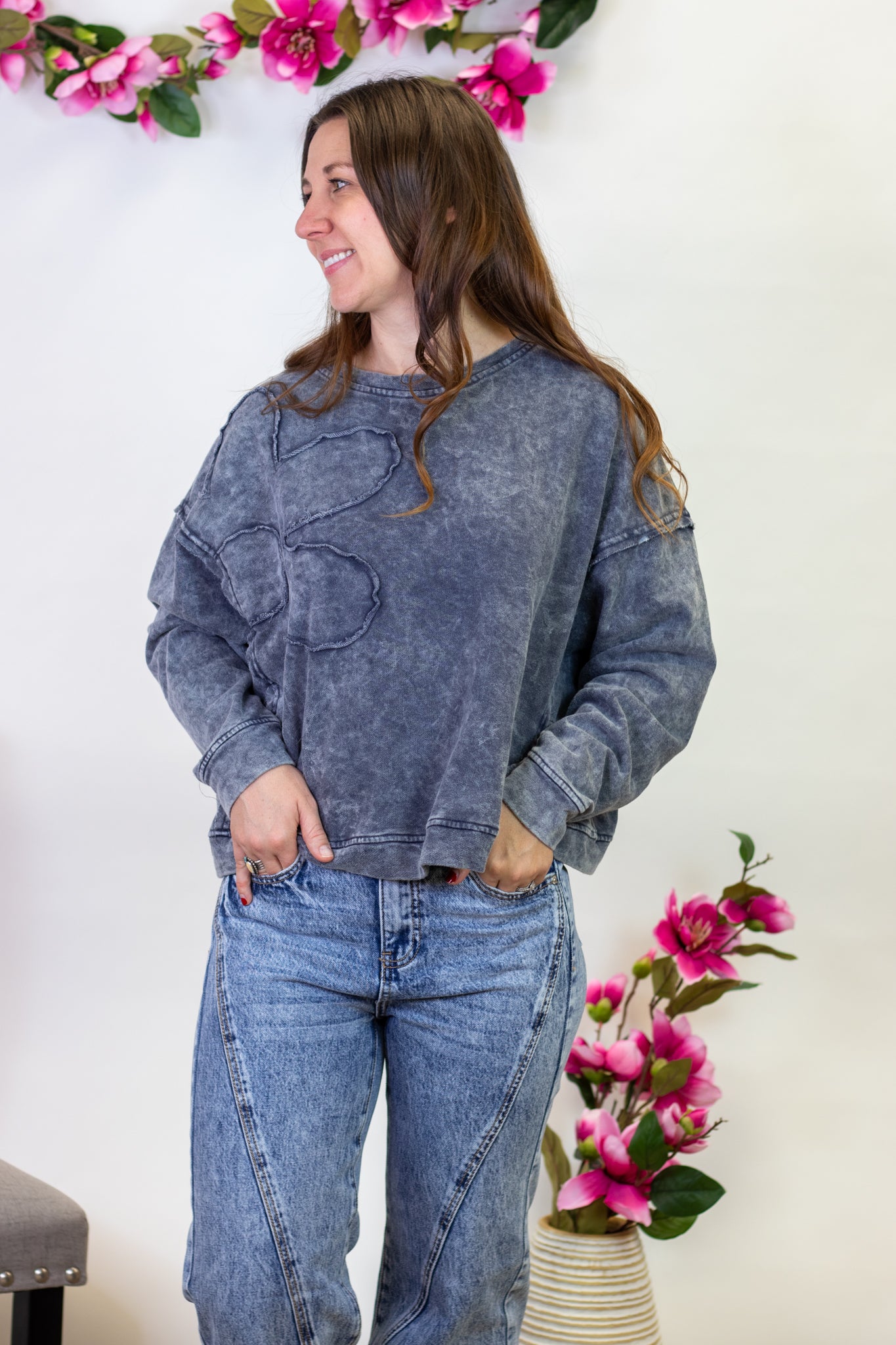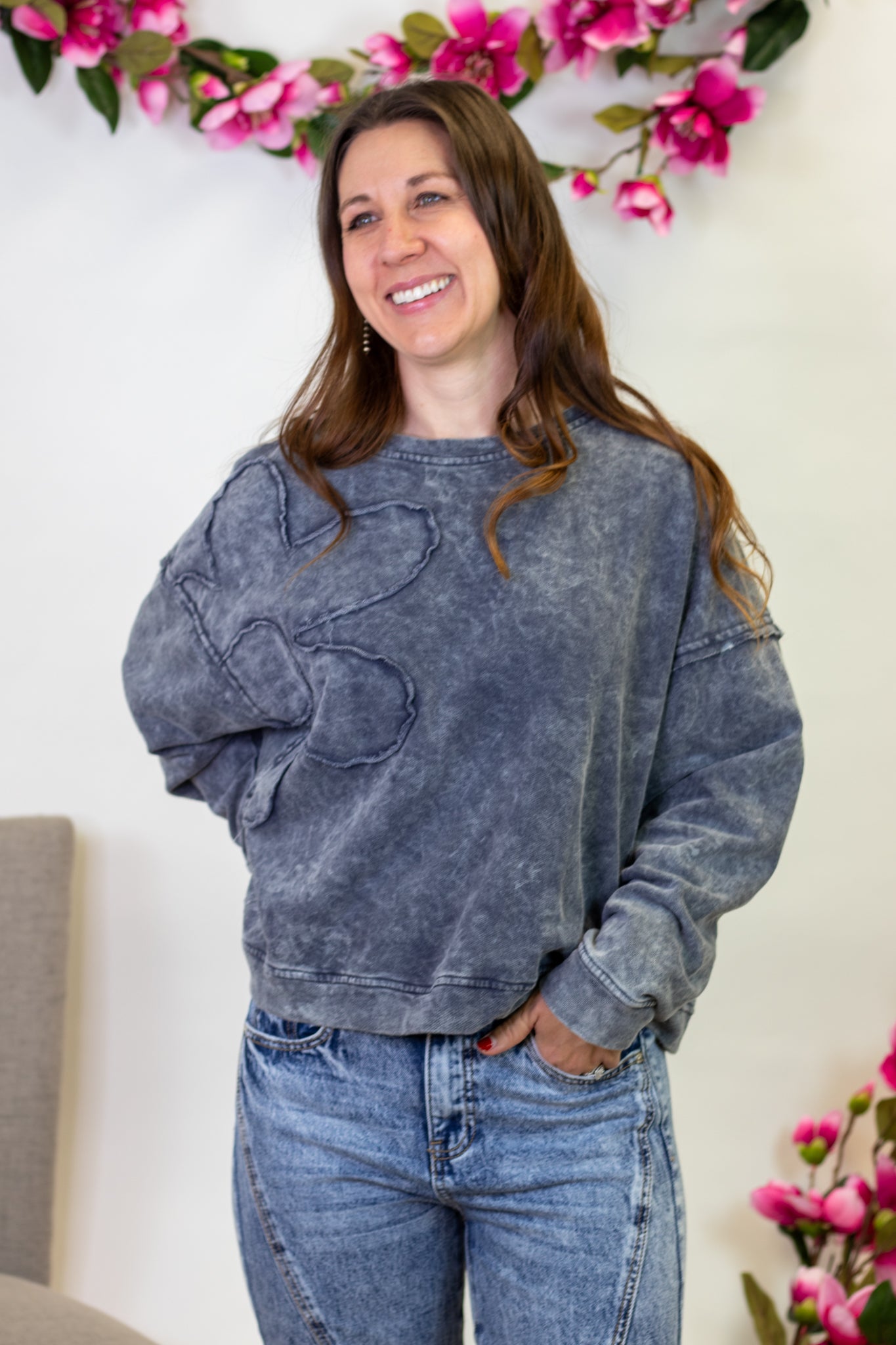 Meet The Flower Patch Pullover—the adorable charcoal pullover that’s giving cozy comfort with a fresh spring twist. This easy-wear piece features subtle floral patch detailing that adds just the right amount of personality without overpowering the look. The soft, washed charcoal fabric makes it feel lived-in and comfy from the first wear, while the relaxed silhouette keeps things effortless. It’s perfect for those in-between seasons when you want something lightweight but still cozy. Style it with your favorite denim or layer it over a tank for an easy, everyday outfit. Fits true to size with a relaxed, easygoing fit you’ll reach for again and again.