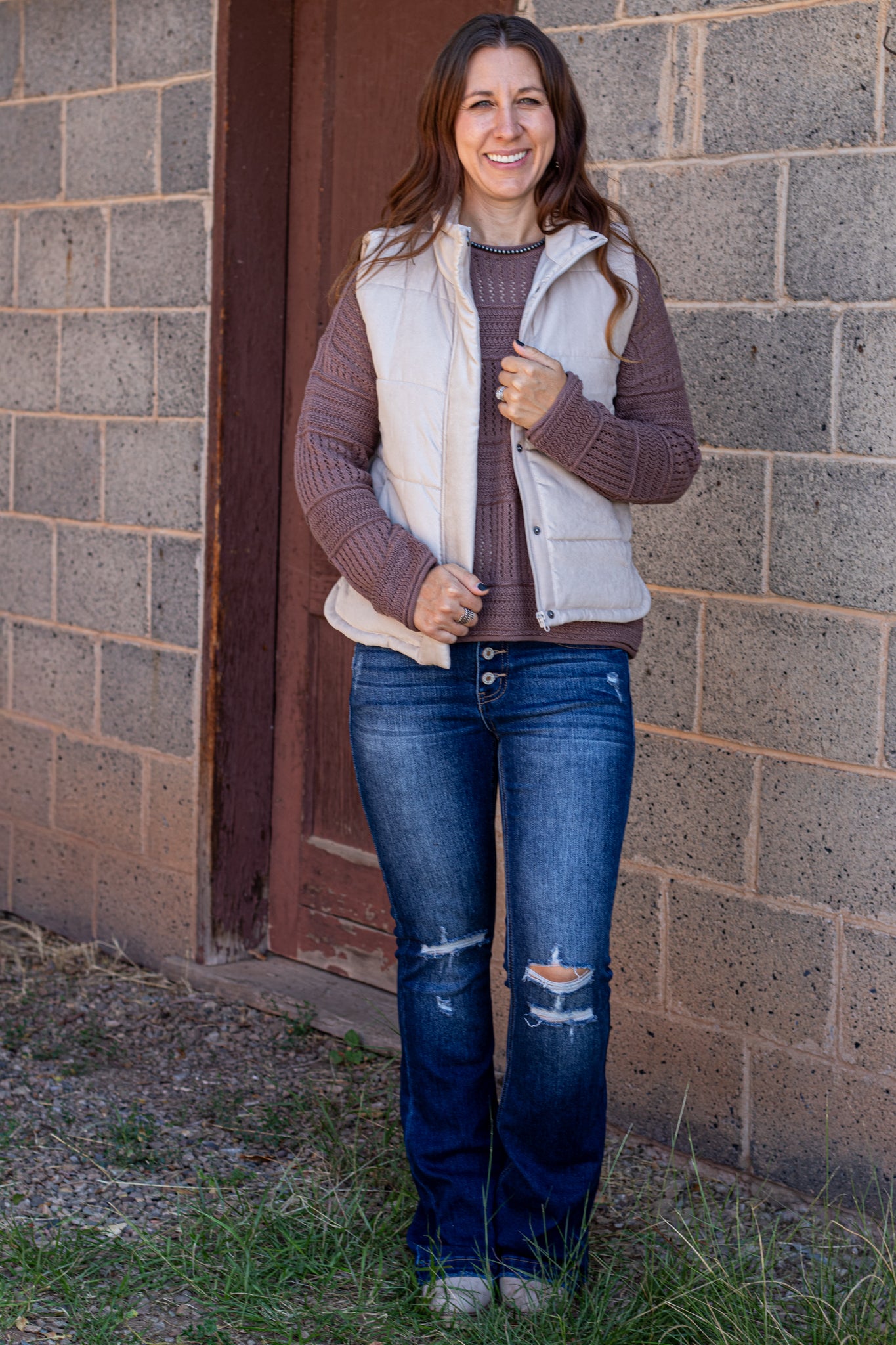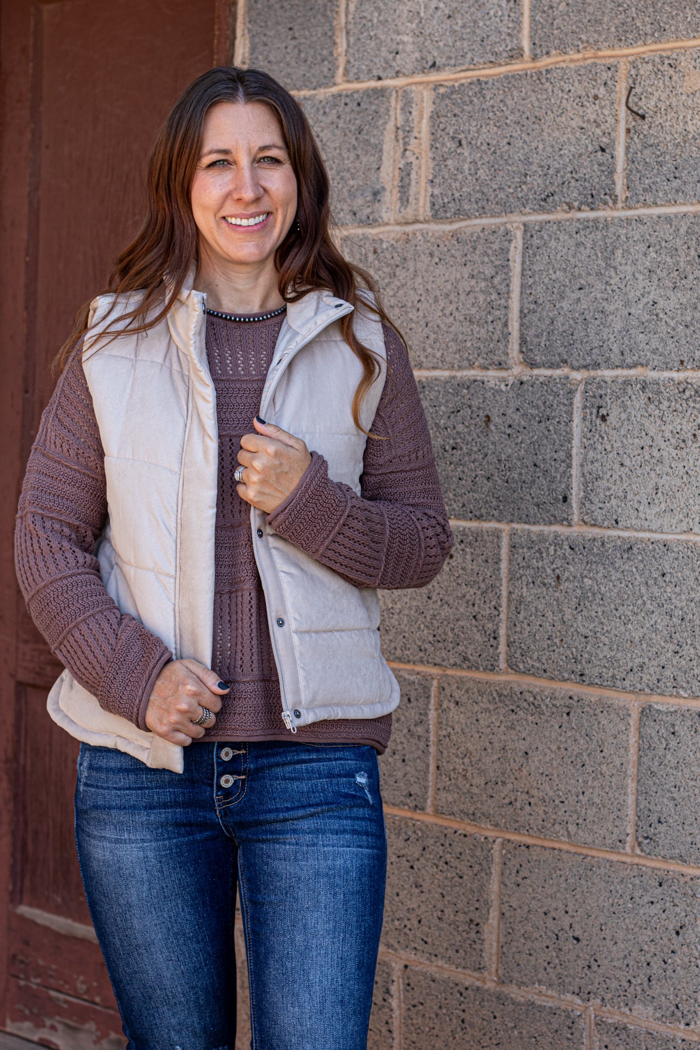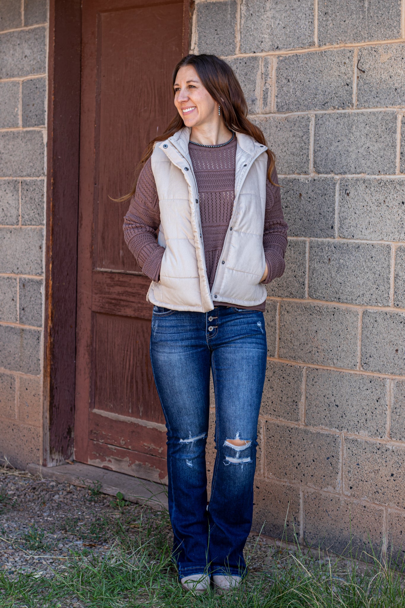 Meet the Peyton Vest, your new go-to layering piece you’ll want to throw on with everything. This beige padded vest features a subtle micro-rib texture that adds just the right amount of detail while keeping things effortlessly chic. It’s lightweight yet cozy, making it perfect for transitional weather and all-day comfort. We love how it adds instant polish to basics without ever feeling bulky. Fit is true to size, and trust us—once you put it on, you’ll understand why we’re completely obsessed.