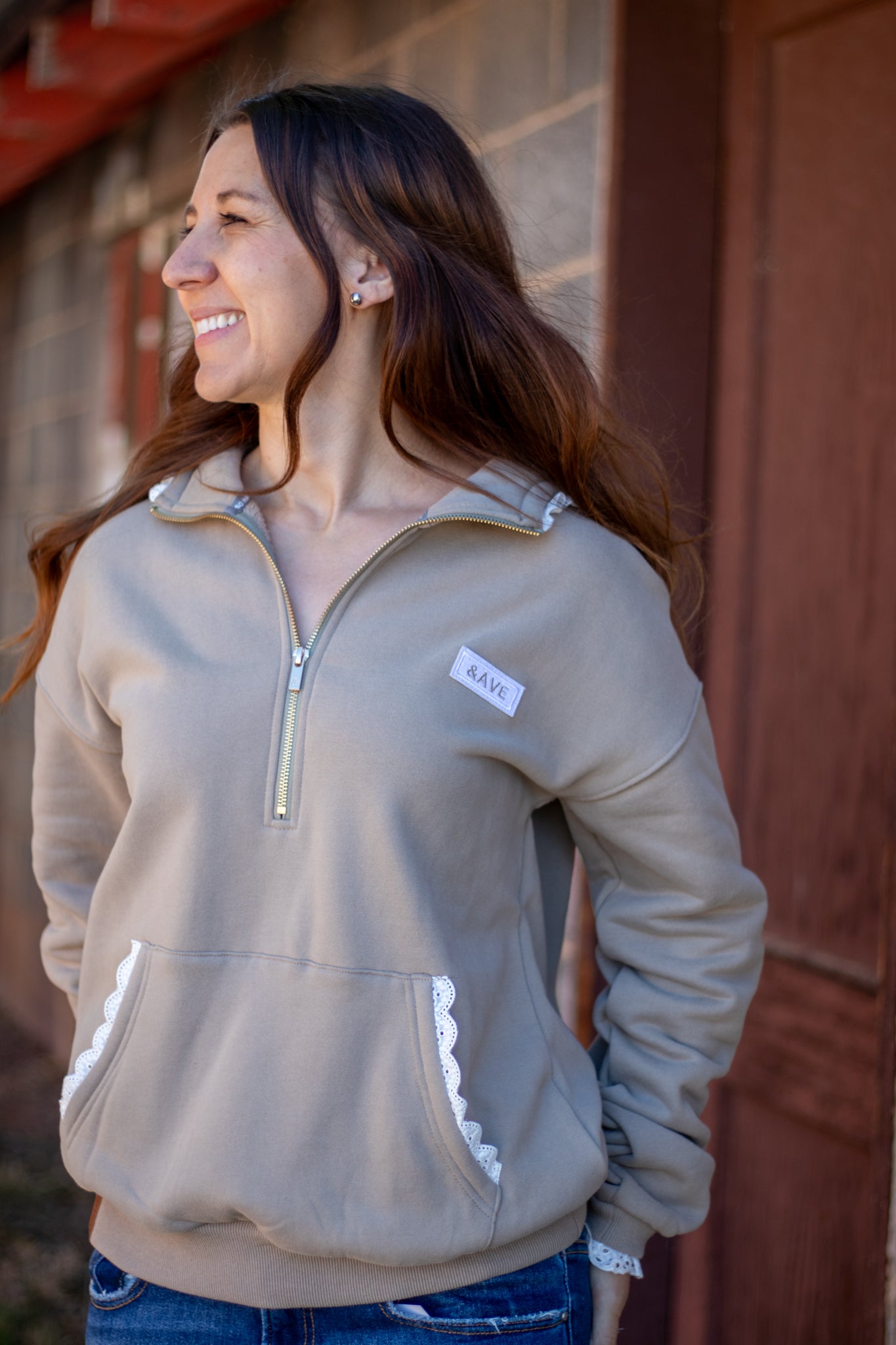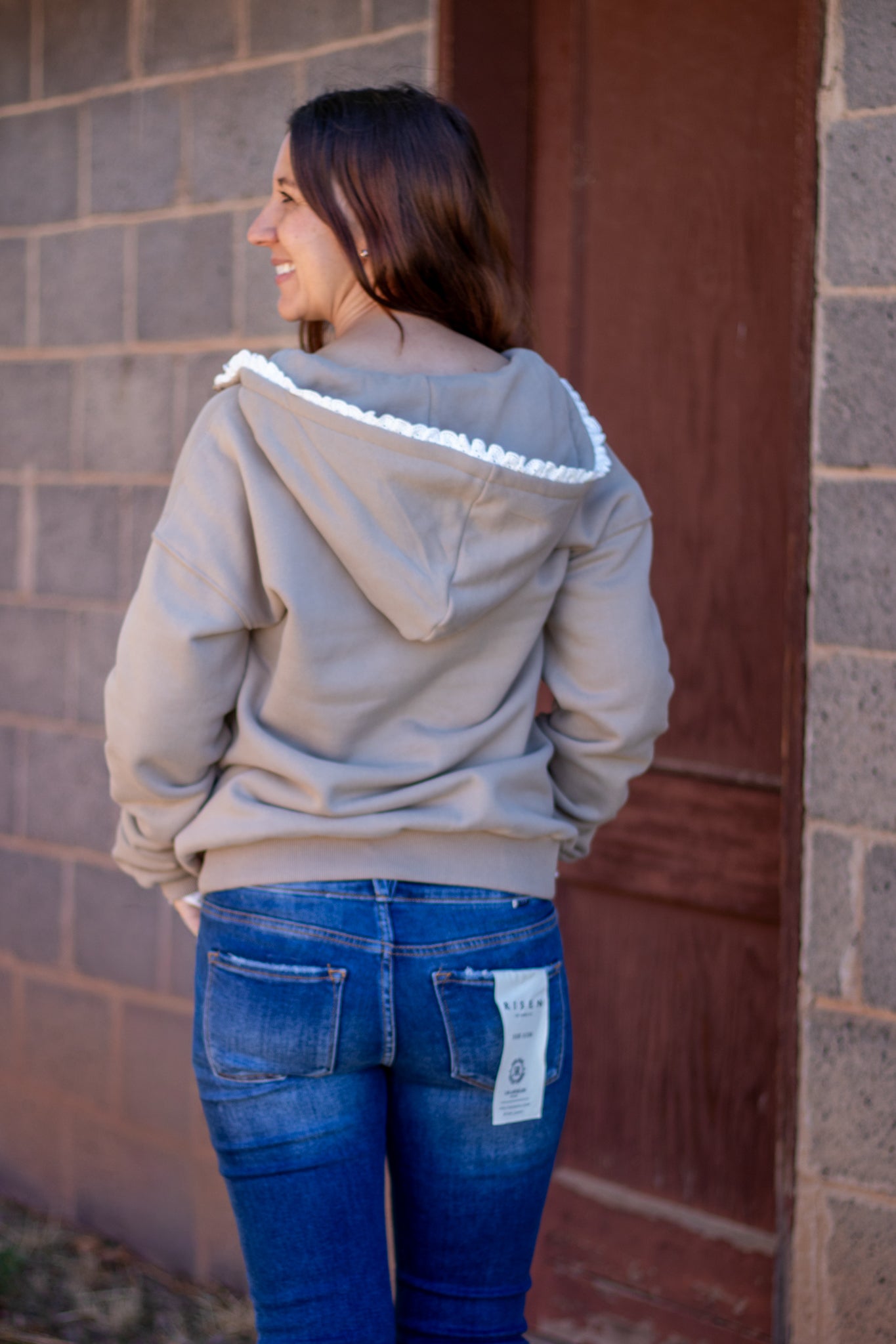 Step into cozy perfection with our Comfort Zone HalfZip – Mocha Lace Hoodie by Ampersand Ave! 🤎 This staff favorite is all about the details — from the gorgeous lace accents to the eye-catching gold zipper that adds a touch of glam. The ultra-soft fleece lining makes it feel like a warm hug every time you slip it on. Whether you’re lounging at home or running errands, this hoodie keeps you warm, adorable, and totally in style!
