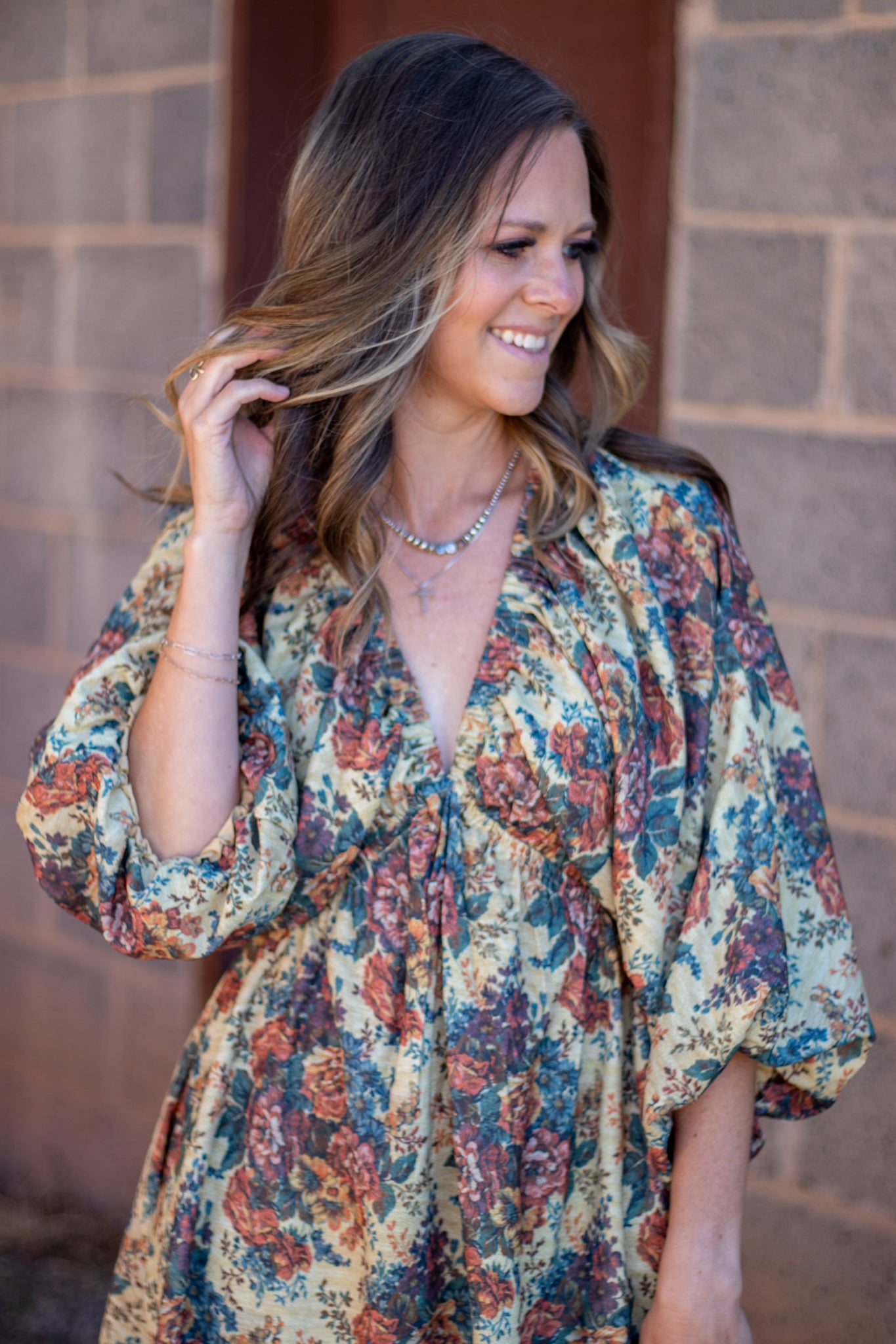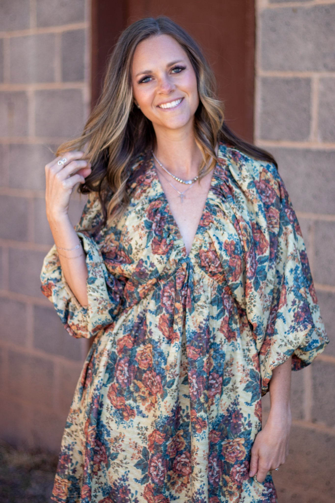 The Bethany Bubble Dress is giving all the vintage floral feels! This fun and feminine dress stands out with its unique details — from the flirty plunging neckline to the playful bubble sleeves and flowy silhouette. The vintage-inspired floral print adds a touch of nostalgia while keeping things fresh and effortlessly chic. Whether you’re headed to brunch, a fall wedding, or a weekend outing, this dress is sure to turn heads for all the right reasons.